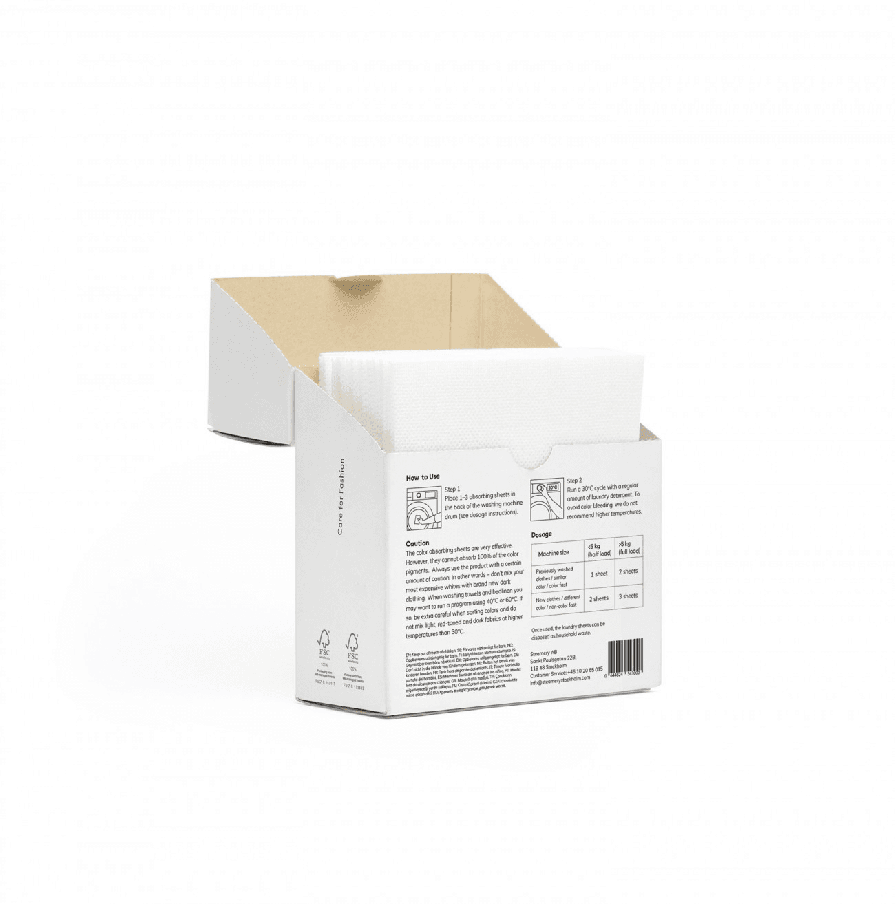 Įspėjimas: Spalvą sugeriančios servetėlės yra tikrai veiksmingos, tačiau jos negali 100 proc. sugerti intensyvių spalvų audinio pigmentų, todėl maišydami skalbinius, juos atrinkite atsakingai.