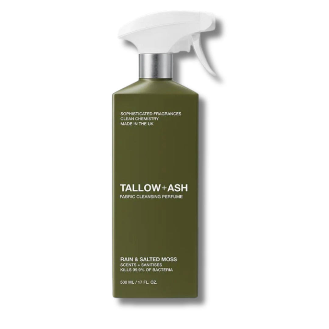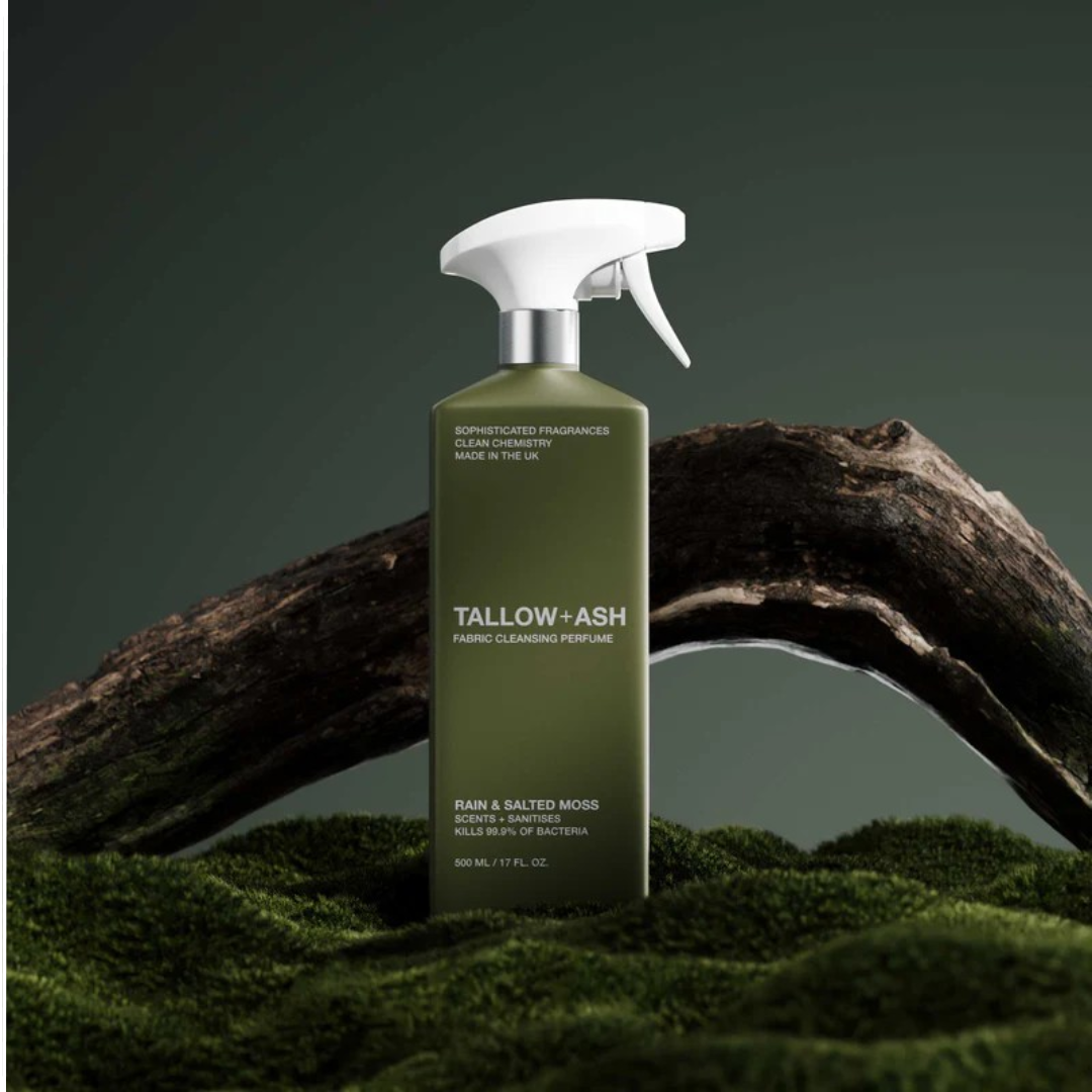 Tallow + Ash audinių dulksnos kvepina ir dezinfekuoja audinius. Jomis galite atgaivinti drabužius tarp skalbimų. Puikiai tinka valyti apmušalus, kurie netelpa į skalbimo mašiną!