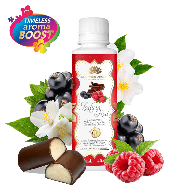 Įkvėptas nišinės parfumerijos, „Lady in Red“ reprezentuoja tikrai įsimintiną kvapų kelionę, kuri prasideda nuo juodųjų serbentų ir jazminų akordų – gaivaus ir vaisinio mišinio, galinčio palepinti visus Jūsų pojūčius. Aromato širdyje įdėta šviežių aviečių, kurios išlaiko saldumo pojūtį, kuris užbaigia potyrį, su smulkių praline pagalba. Rezultatas? Gurmaniškas ir nenugalimas kvapas vienu metu.