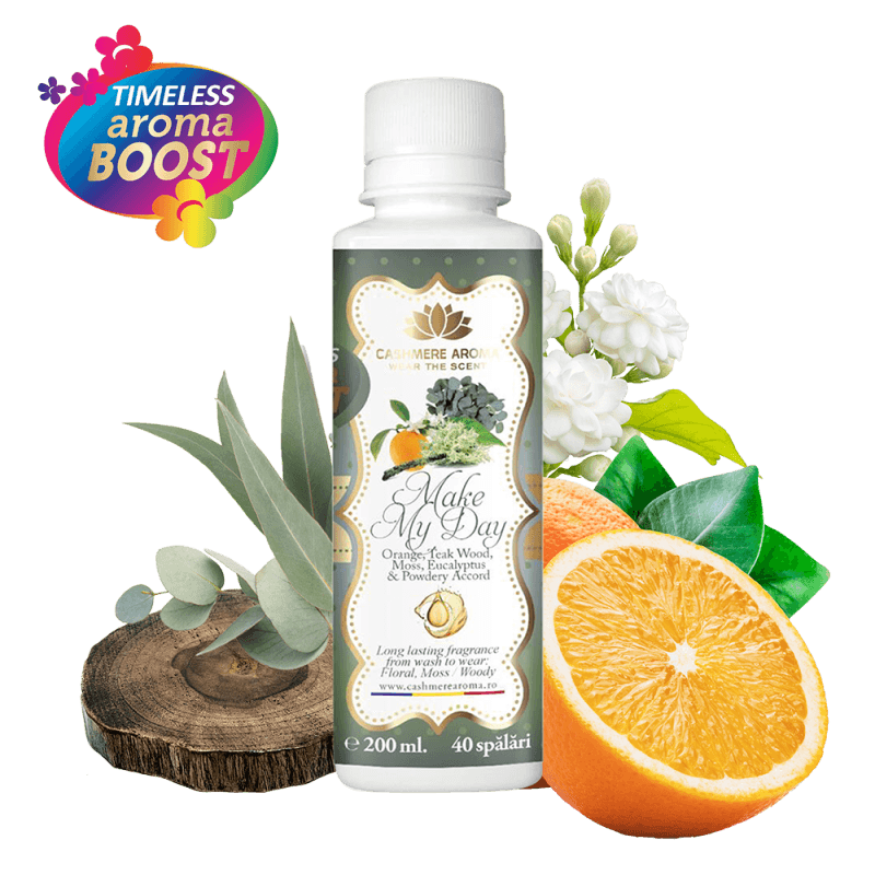 Gaivus skalbinių kvapas „Make My Day“ džiugins jus nuo pat pradžių sultingo apelsino, tikmedžio ir šviežio eukalipto tonais. Pagrindinės pudrinės natos neleis pamiršti šio aromato.