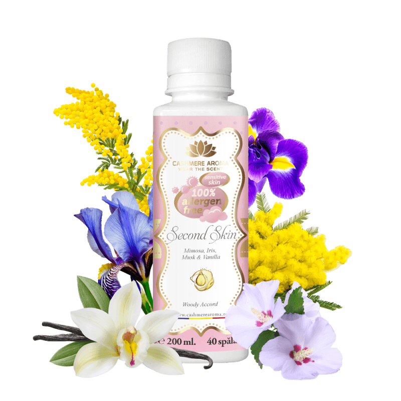 „Second Skin” – pirmieji Cashmere Aroma 100 % alergenų neturintys aukščiausios kokybės skalbinių kvepalai, skirti jautriai odai. Rekomenduojama turintiems įvairių odos ligų, negalintiems naudoti alergenų turinčių kvepalų. Jie draugiški ir vaikams.