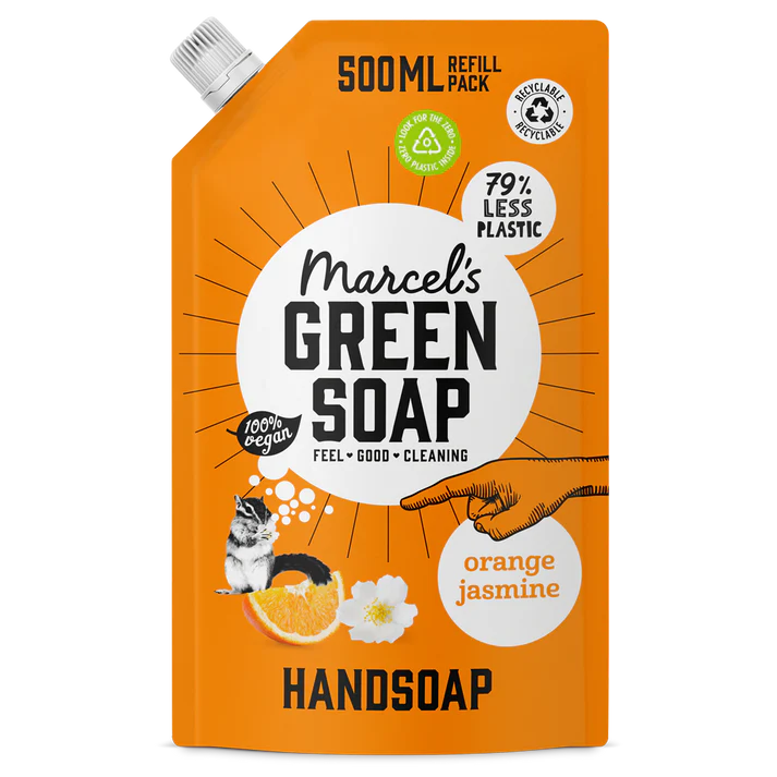 Marcel’s Green Soap rankų muilas pagamintas iš natūralių augalinės kilmės ingredientų, 97% biologiškai skaidus.